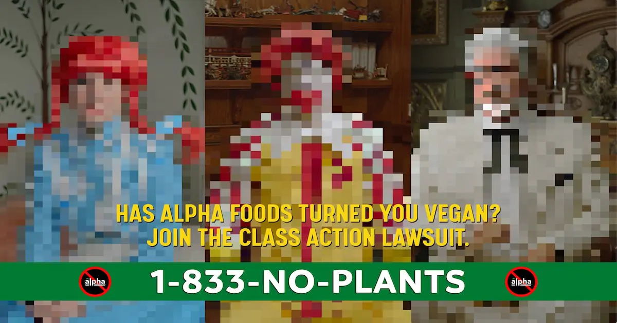 Unidentified Fast Food Mascots Sue Alpha Foods for Turning Them Into Vegans in New Ad